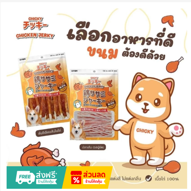 חטיפי עוף לכלבים Chicky Chicken Jerky, עשירים בחלבון, מגוון סוגים