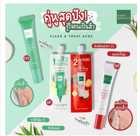 ג’לים נקודתיים מבית Baby Bright, מיועדים לטיפול ממוקד בפצעונים, אדמומיות וסימני אקנה. המרקם קליל, נספג במהירות ומתאים לשימוש יומיומי על אזורים נקודתיים בפנים.