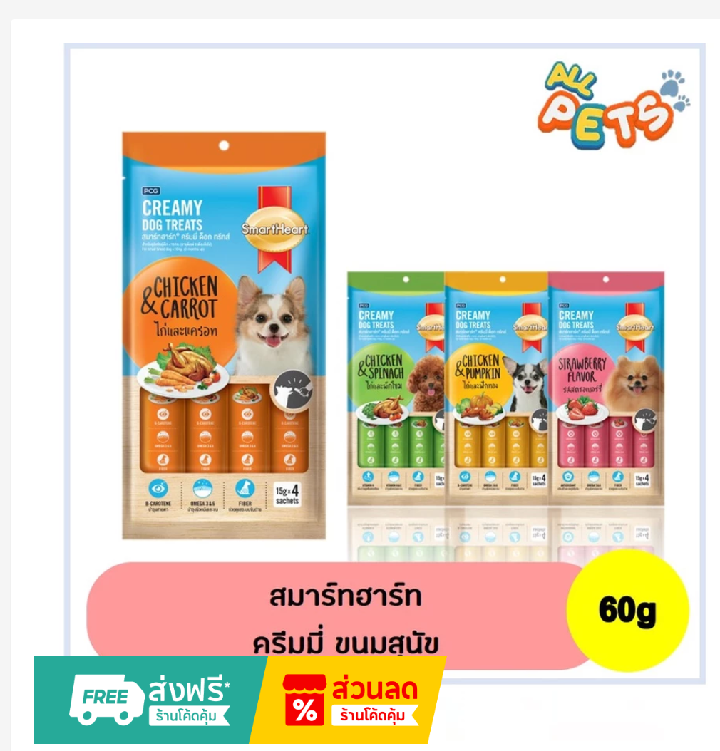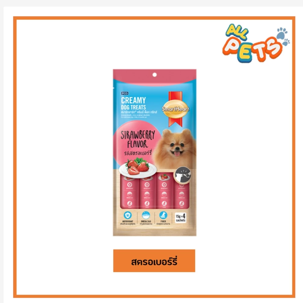חטיף קרמי מפנק לכלבים מבית SmartHeart, במרקם רך ונוזלי שאפשר לתת ישירות מהשקית או כתוספת לאוכל.
