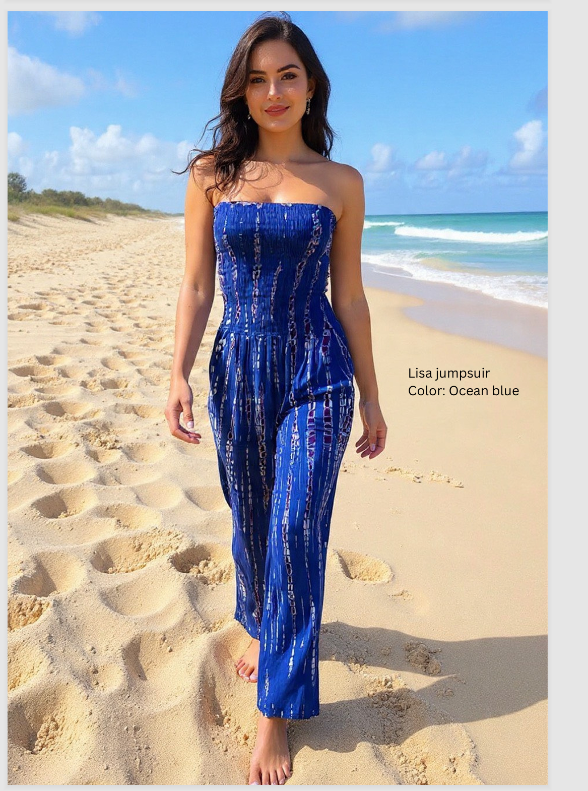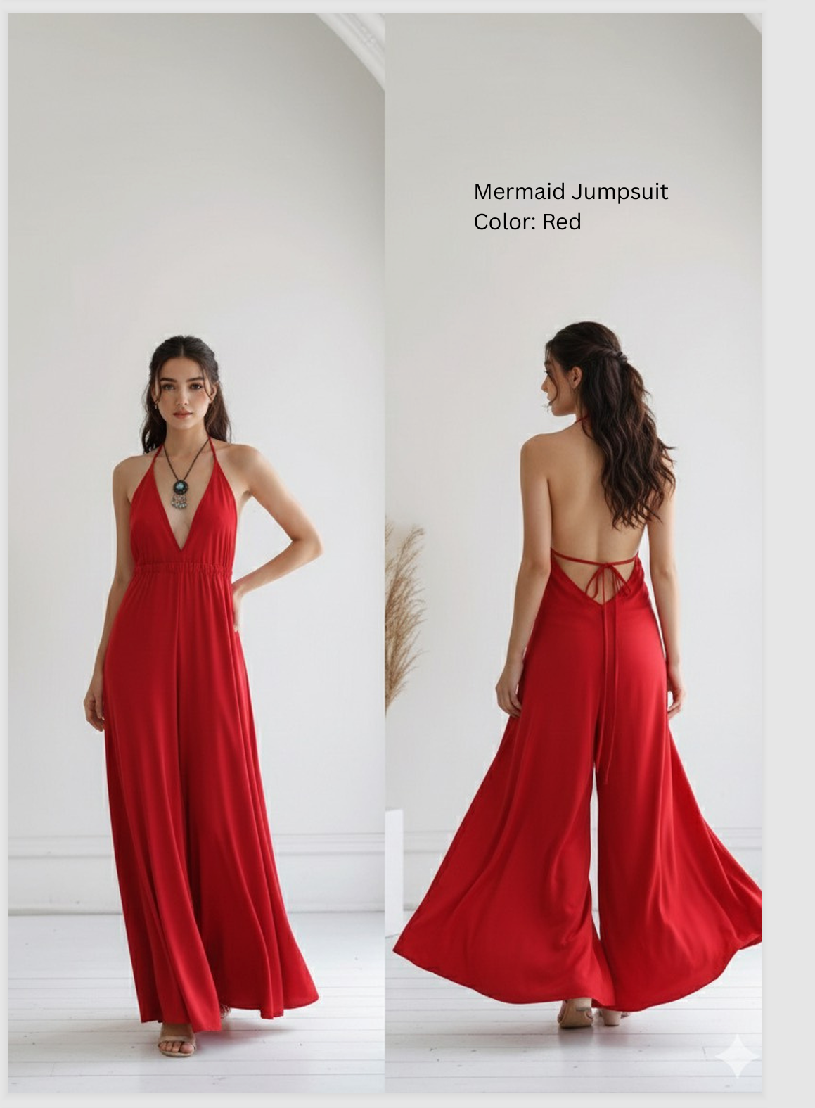אוברול עם מחשוף עמוק וגב פתוח עם קשירה עדינה שנותן מראה סופר נשי ואלגנטי.