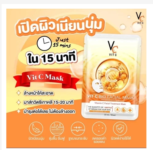 מסכת בד ביולוגית מועשרת בויטמין C, מיועדת להענקת מראה עור בהיר, רענן ואחיד. המסכה נצמדת היטב לעור ומאפשרת ספיגה יעילה של הלחות והרכיבים הפעילים.