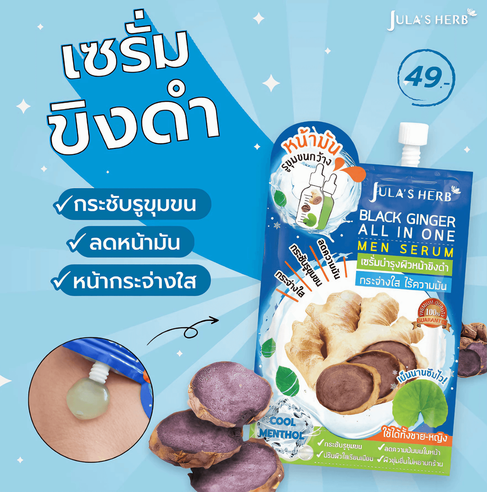סרום ייחודי לגברים המשלב ג'ינג'ר שחור, קירור מנטה ורכיבים טבעיים להזנה וטיפול בעור שומני או עם נקבוביות פעורות