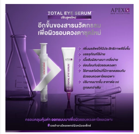 APEX-SX Total Eye Serum הוא סרום עיניים ברמה דרמוקוסמטית, משלב פפטידים מתקדמים, תמציות צמחיות יוקרתיות וטכנולוגיות אנטי אייג’ינג, לפעולה עמוקה, מדויקת ונראית לעין.