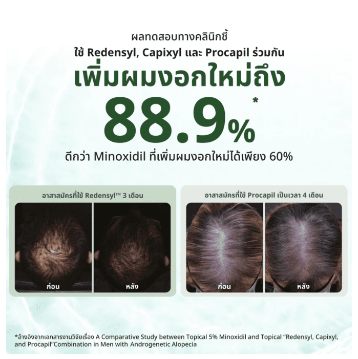 • Procapil™ (3%) – שווייץ 🇨🇭 – תמצית מעלי זית וצמחים ממשפחת ההדרים, משפרת את זרימת הדם בקרקפת ומעודדת צמיחה באזורים דלילים.
