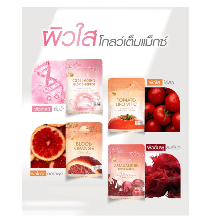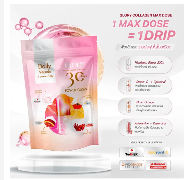 מותג GLORY מתאילנד מציג תוסף תזונה יוקרתי בשקיות אישיות, שנועד לשפר את מרקם העור ולהעניק מראה בהיר, אחיד וזוהר תוך 15 יום בלבד.